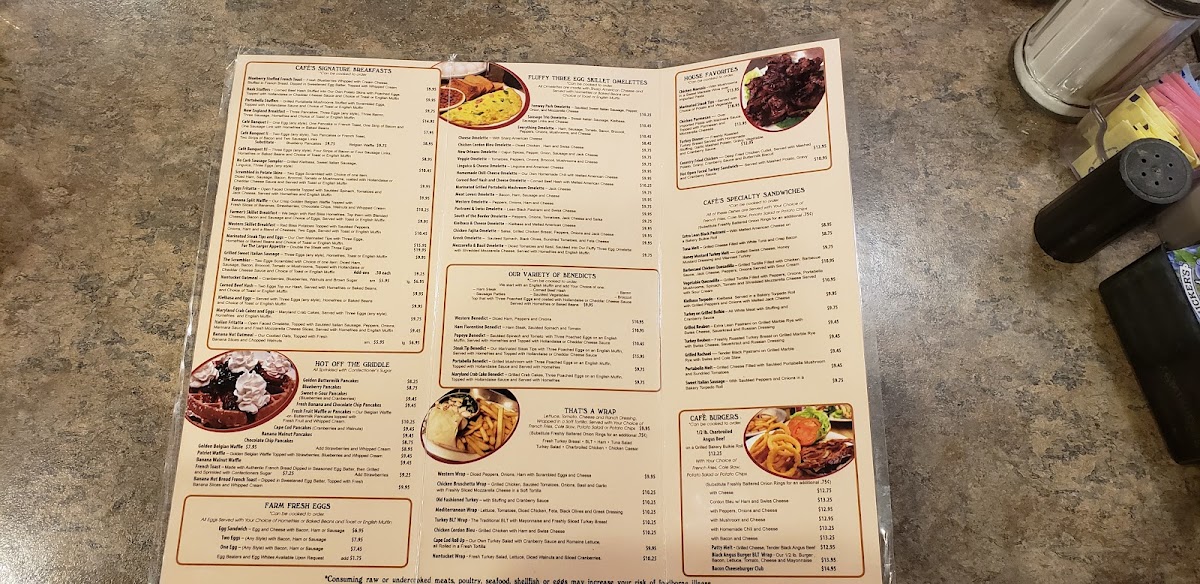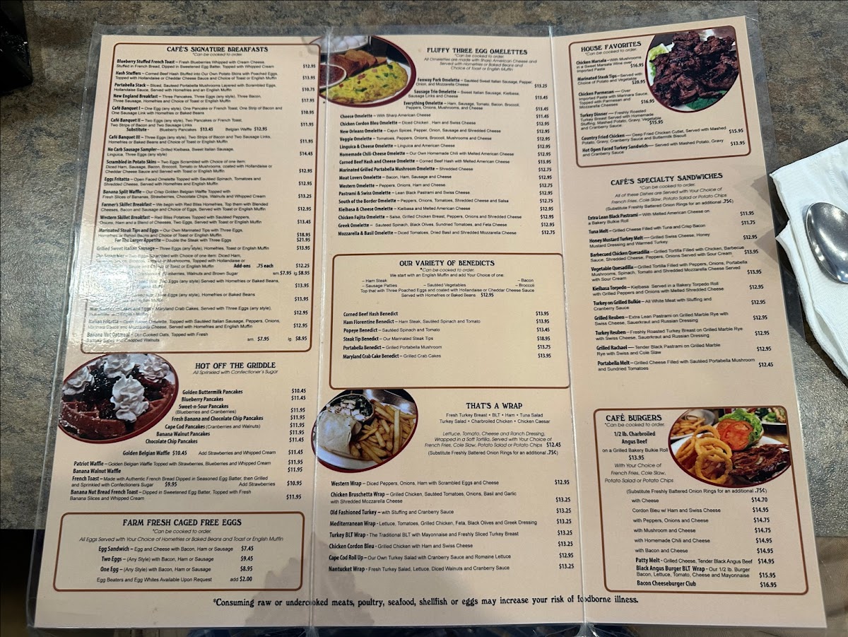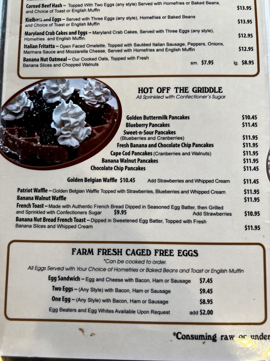 Maryland crab cakes, served with three eggs (any style). Homefries and english muffin.