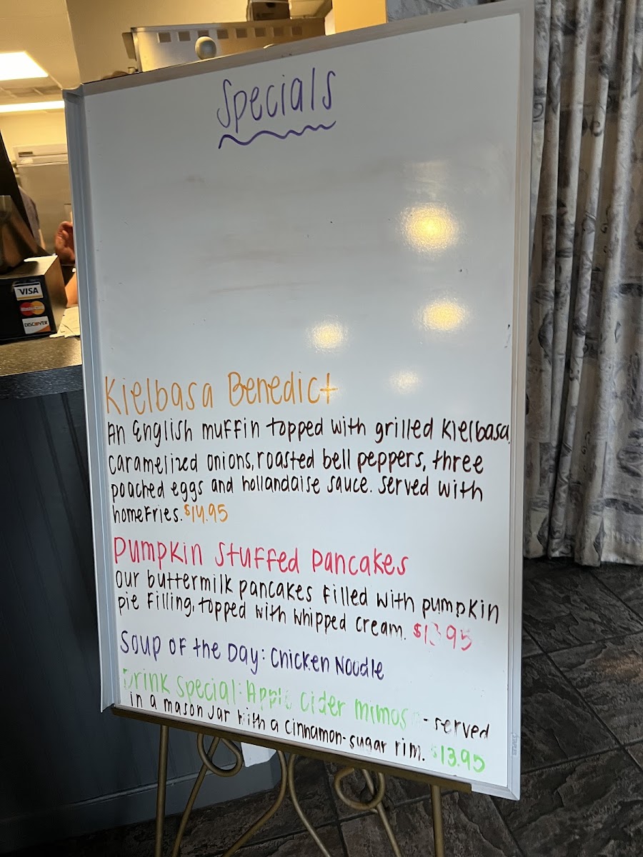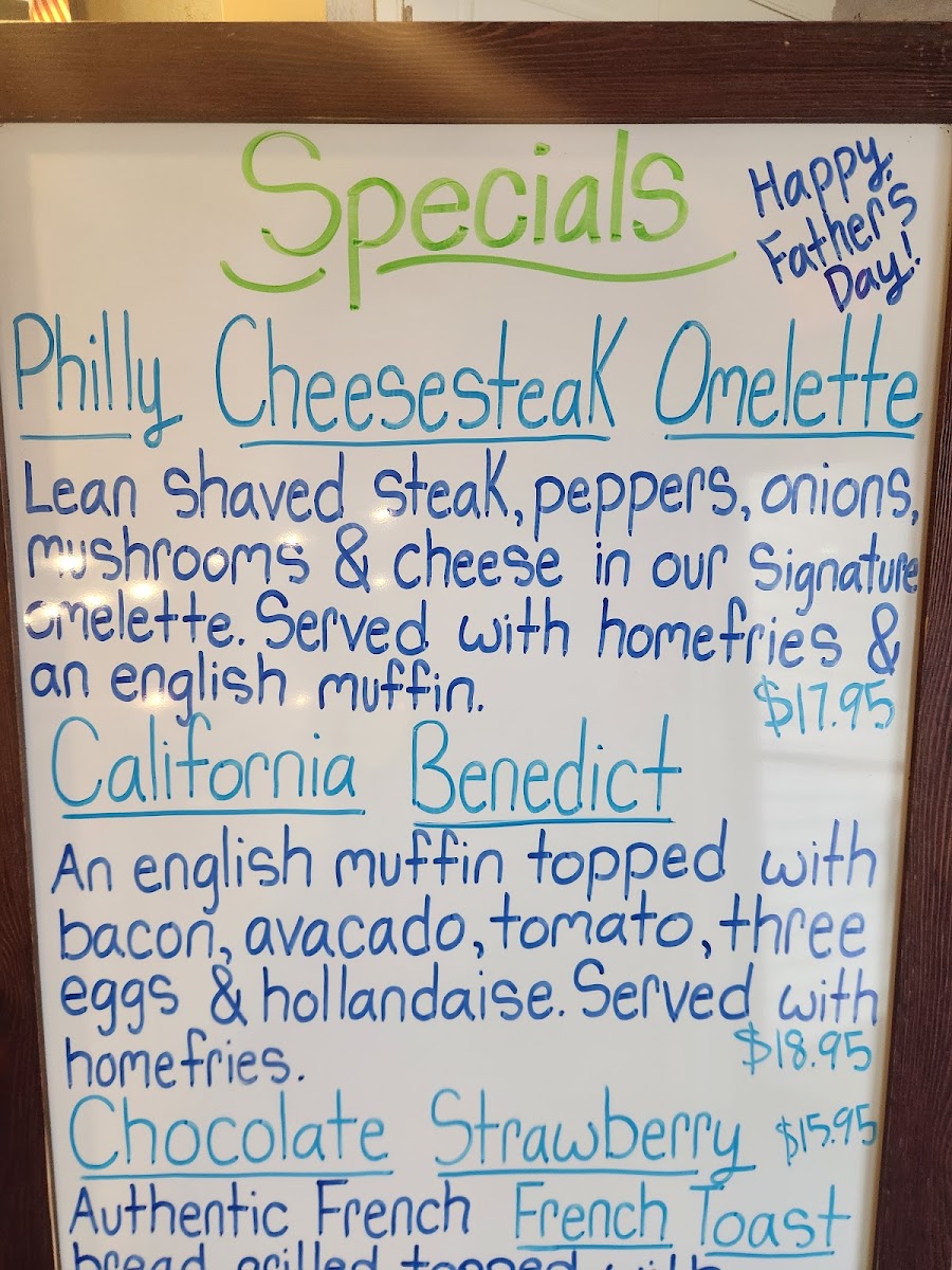 Open faced omelette, topped with sautéed italian sausage, peppers, onions, marinara sauce and fresh mozzarella cheese slices, served with homefries and english muffin